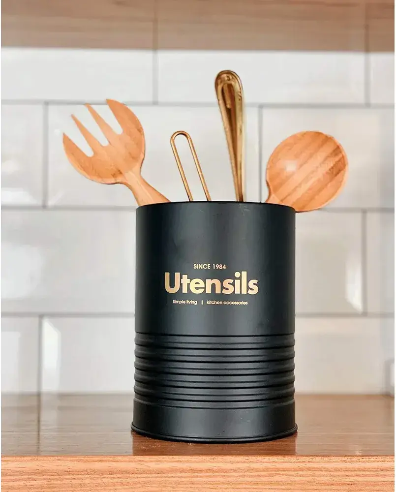 Zyra Metal Utensils Holder Black,Gold