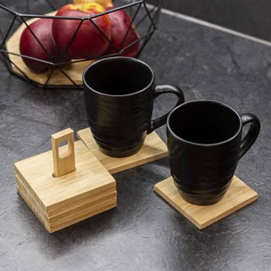 Excellent Houseware - coasters - 6 pcs - bamboo - 9x9 cm