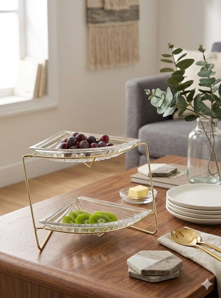 Shifaf 3-Piece Glass Snack Bowl and Stand Set Present appetisers and desserts w