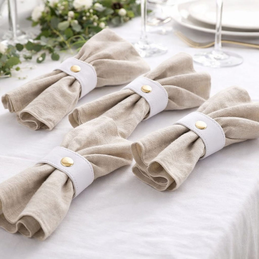 7.5" White Band and Gold Snap Faux Leather Napkin Rings